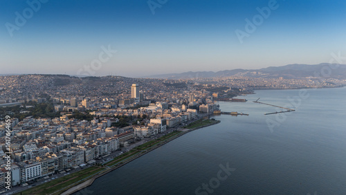 Obraz premium A magnificent morning view of Alsancak, izmir. Good morning izmir, Turkey. Aerial shot.