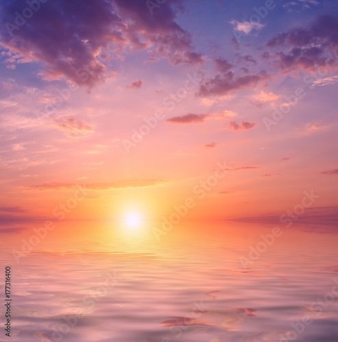 Fototapeta premium A magnificent sunset with a bright sun over the sea.