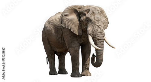 Fototapeta premium A majestic african elephant standing tall with its trunk curled, isolated on...