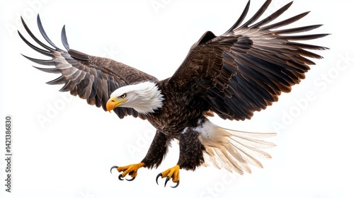 © Vangly, Fototapeta premium A majestic bald eagle soaring gracefully with its wings spread wide.