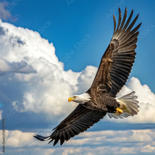 © Afroza, Fototapeta premium A majestic bald eagle soaring high