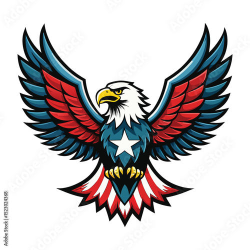 © Lovely, Fototapeta premium a majestic bald eagle with its wings spread wide.