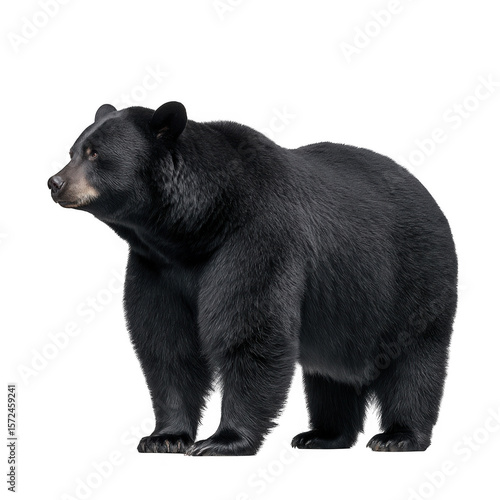 © MtRawnok, Fototapeta premium A majestic black bear stands alert on a transparent background isolated on transparent background