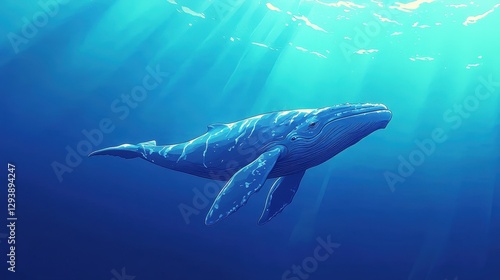 Fototapeta premium A majestic blue whale glides through shimmering azure waters, its detailed...