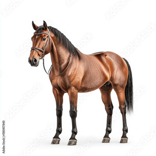 © UnderTheSun, Obraz premium A majestic brown Westfalen horse stands proudly, showcasing its strong build and graceful posture in a clean white background.