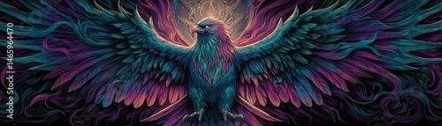 Obraz premium A majestic, colorful eagle with outstretched wings and glowing patterns,...