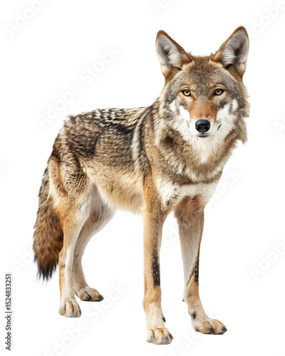© Dewi, Fototapeta premium A majestic coyote stands alert in a natural setting, showcasing its keen eyes and sharp features