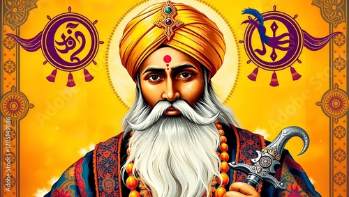 Fototapeta premium A majestic depiction of Guru Gobind Singh Ji surrounded by divine aura