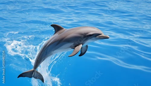 Naklejka premium A majestic dolphin leaping gracefully out of the crystal clear ocean water...