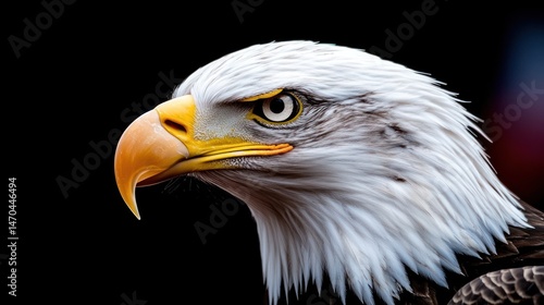 Obraz premium A majestic eagle head displays its piercing gaze and strong features