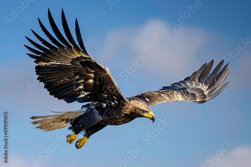Obraz premium A_majestic_eagle_in_mid-flight_wings_spread_wide_aga
