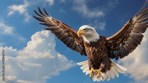 Obraz premium A majestic eagle soaring through a clear blue sky