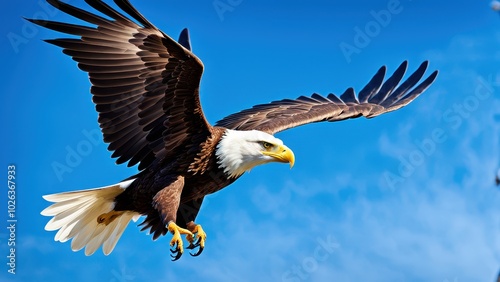 Fototapeta premium A majestic eagle soaring through a clear blue sky, showcasing its powerful...