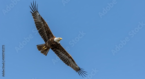 Obraz premium A majestic eagle soars in a clear blue sky, representing freedom, power, vision, and high aspirations.