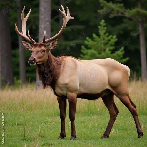 © Pixel Matrix, Fototapeta premium A majestic elk portrayed realistically with an emphasis on intricate details textures and fur patterns
