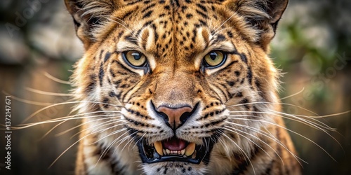 Fototapeta premium A majestic feline face with fierce expression and razor-sharp teeth