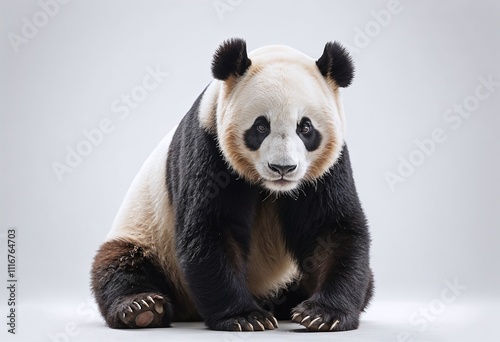 Fototapeta premium A majestic giant panda sits calmly, showcasing its distinctive black and...