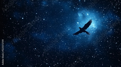 Obraz premium 103. A majestic glowing phoenix flying through an ethereal sky filled with stars