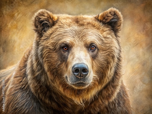 © Arnada, Fototapeta premium A majestic grizzly bear emerges from skilled pencil strokes on textured paper, its fur and muscles meticulously