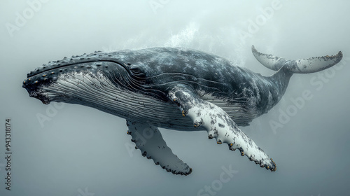 Obraz premium A majestic humpback whale breaching through the ocean surface, surrounded by...