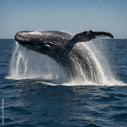 © Pakhtoon, Fototapeta premium A majestic humpback whale spouting water from its blowhole.