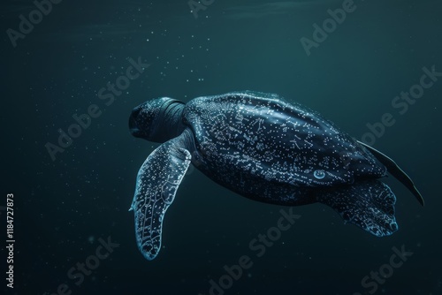 Fototapeta premium A majestic leatherback sea turtle glides gracefully through the deep ocean waters, showcasing its powerful flippers and unique shell patterns in a serene underwater environment