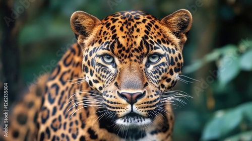 Fototapeta premium A majestic leopard in the wild, capturing a moment of intense focus.