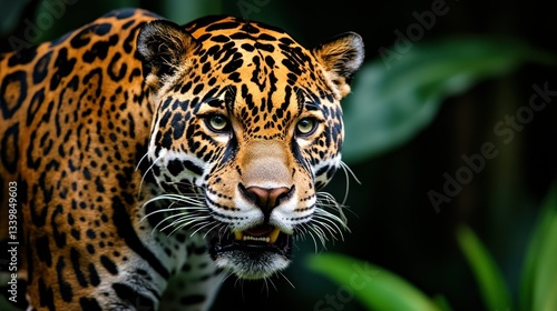 © pupus, Obraz premium A majestic leopard is staring directly toward the viewer