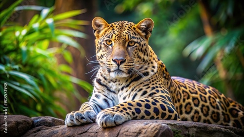 Fototapeta premium A majestic leopard resting in its natural habitat, wildlife, predator,...