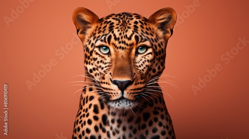 Fototapeta premium A majestic leopard up close against a vibrant red backdrop