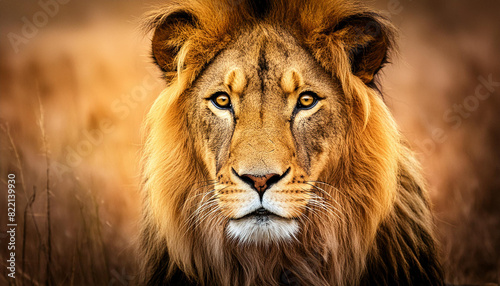 © AigBaladhika, Fototapeta premium A majestic lion roars proudly in the savanna during World Lion Day celebrations
