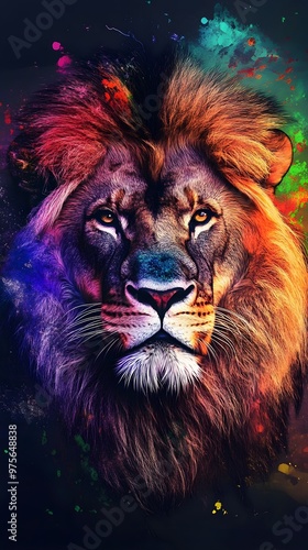 Naklejka premium A majestic lion with a colorful mane, a powerful and inspiring image.