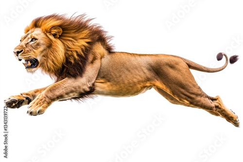 © boler, Fototapeta premium A majestic male lion running with an open mouth and mane