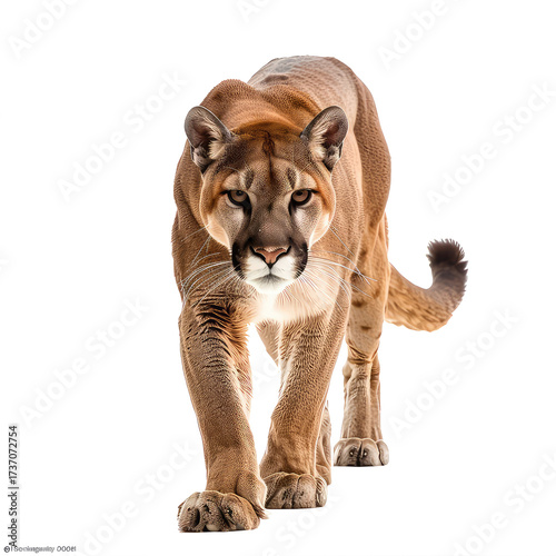 © Dara, Naklejka premium A majestic mountain lion walking forward in front of a transparent background.
