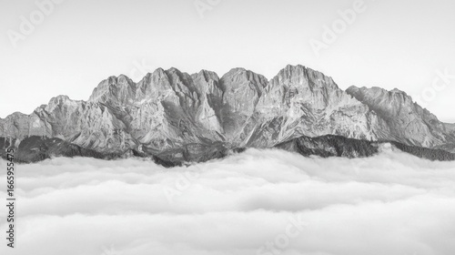 Obraz premium A majestic mountain range, captured in a striking black and white photograph.