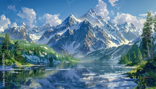 Fototapeta premium A Majestic Mountain Range Reflecting in a Still Lake
