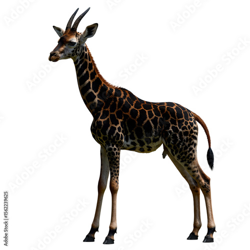 © GMeta, Fototapeta premium A majestic okapi with dark fur and striking white stripes showcasing its elegant pose and unique beauty