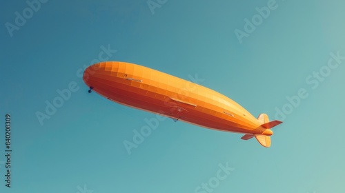Fototapeta premium A majestic orange zeppelin floats gracefully against the clear blue sky.