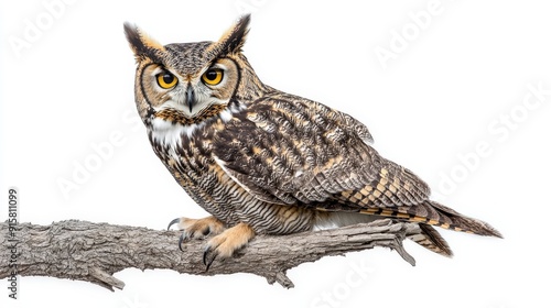 Obraz premium A majestic owl perched on a branch, showcasing its striking features and...