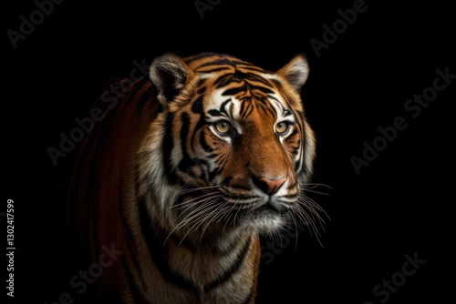 © Paul, Fototapeta premium A Majestic Portrait of a Tiger in a Dramatic Light Setting