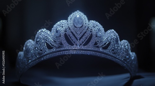 Obraz premium A majestic queens tiara with shimmering diamonds and intricate silver detailing, glowing softly in the darkness
