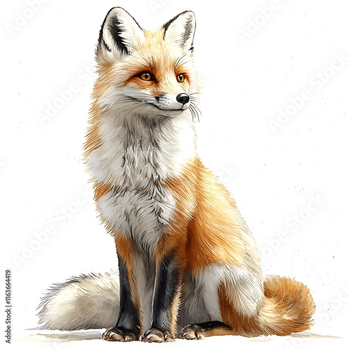 © ubolpun, Obraz premium A Majestic Red Fox Sitting, Digitally Painted in Watercolor Style.