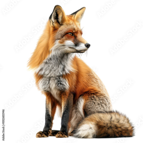 Fototapeta premium A majestic red fox sitting gracefully with a striking fur pattern, showcasing its keen intelligence and wild beauty.