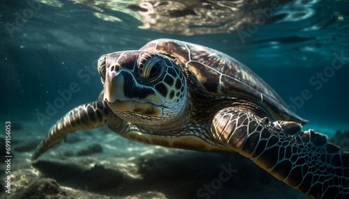 Fototapeta premium A majestic sea turtle swims gracefully in the underwater paradise generated...
