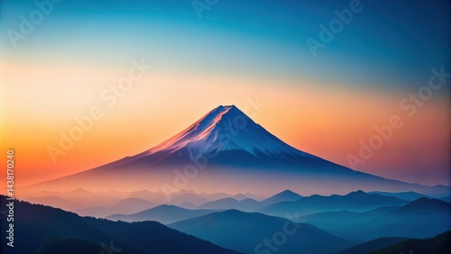 © sasiprapa, Fototapeta premium A majestic snow-capped mountain peak rises against a breathtaking sky of vibrant blue, orange, and pink hues, creating a serene landscape.