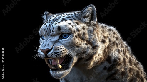 Naklejka premium A majestic snow leopard, piercing blue eyes, mouth slightly open revealing sharp teeth