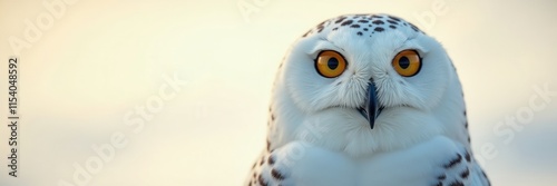 © Yho Stock, Fototapeta premium A majestic snowy owl gazes intently with captivating golden eyes against a soft ethereal background a symbol of arctic wisdom and pristine beauty
