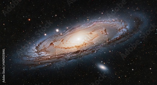 © pratama, Fototapeta premium A Majestic Spiral Galaxy Illuminated by Its Own Stars, Surrounded by Distant Stellar Objects in the Vast Expanse of Space
