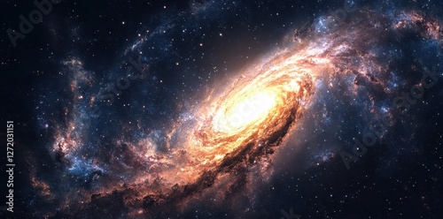 © RizArt, Fototapeta premium A majestic spiral galaxy shines brightly against the dark universe