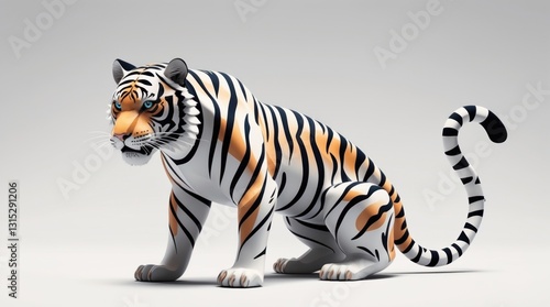 © Falih, Fototapeta premium A majestic tiger in a poised stance, showcasing its striking stripes and piercing gaze, perfect